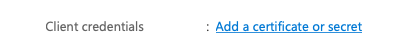 On the registration page click on Add a certificate or secret: