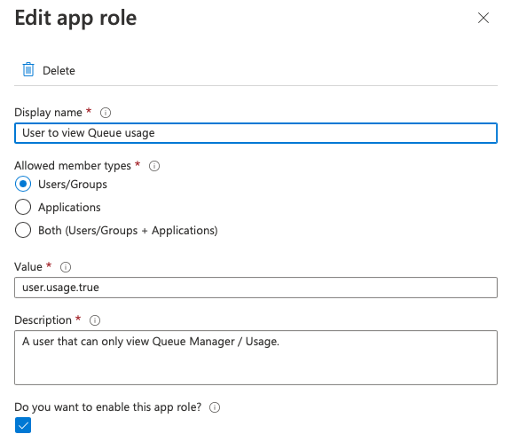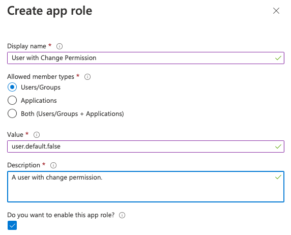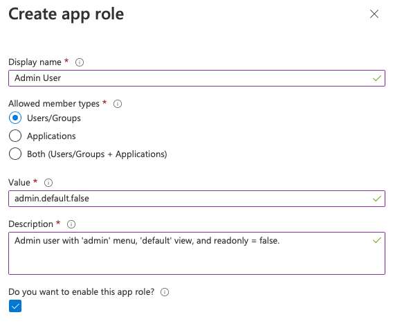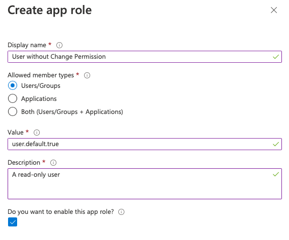 Click on Apply to create the app role.