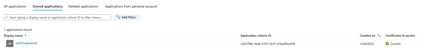 Go to Enterprise applications, and click on swiftmqexplorer. In the left Security menu click on Permissions: