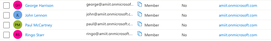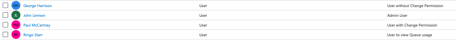 For this example, we have created four well-known users: John, Paul, George, and Ringo. They will get app roles assigned: