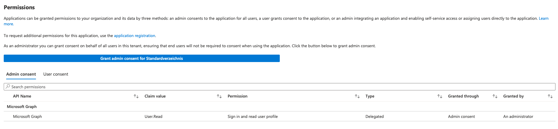 Click on the Grant admin consent button: