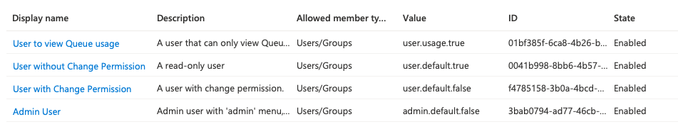 After you have created all required app roles, you’ll see them on the overview page: