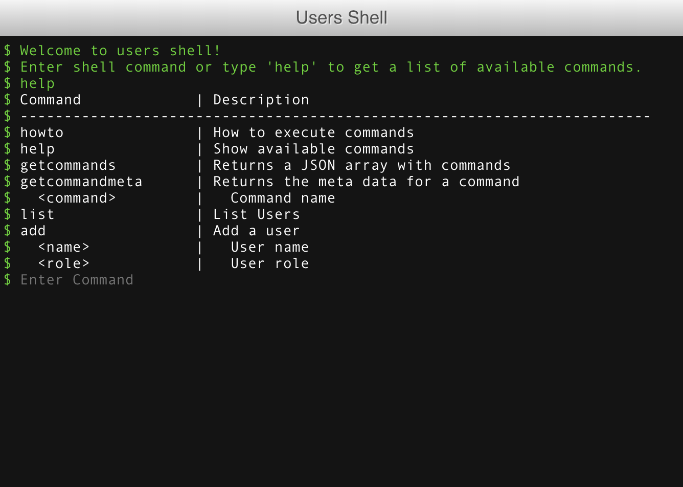 Every shell automatically registers several commands, such as help, that provide extra information for the Terminal.