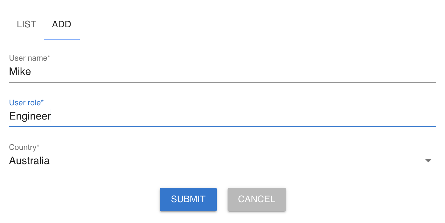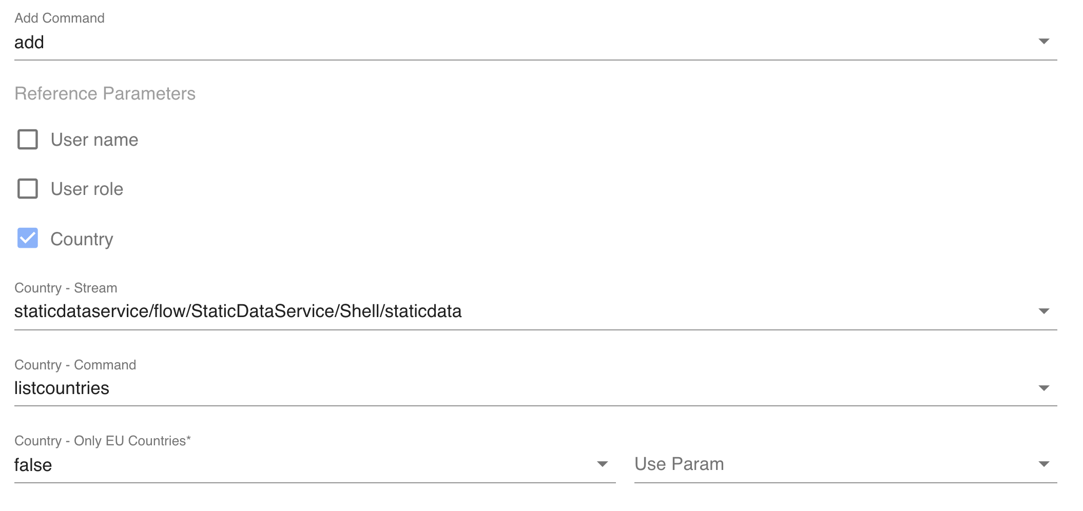 Because we've set up our reference command, the user sees a dropdown list of country names while still sending the country id to the shell command.