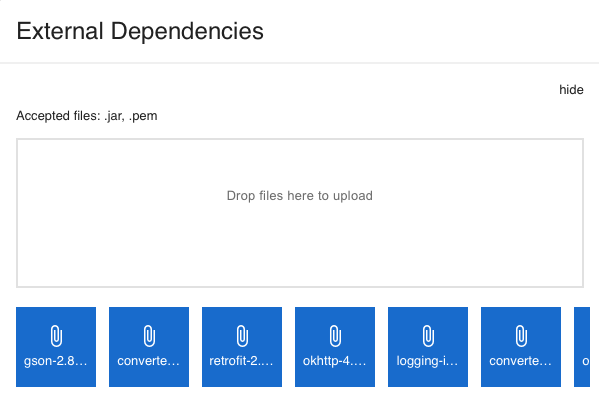 Then drop the jar files into the upload area: