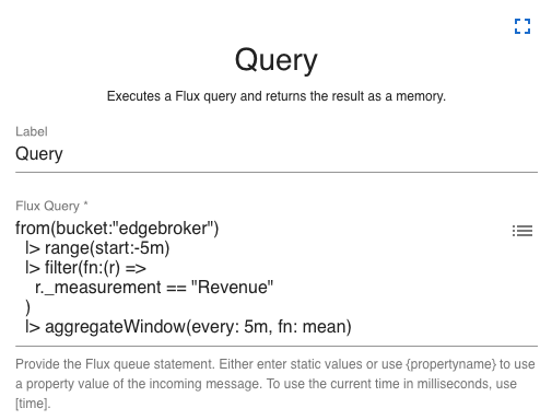 Creates a new InfluxDB connection and provides it as a reference. The connection is created during flow init.
