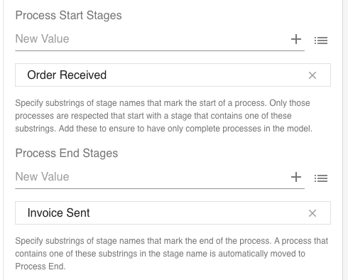 You can also specify process end stages. If a process checks in with one of these stages, it is automatically linked to a Process End stage.