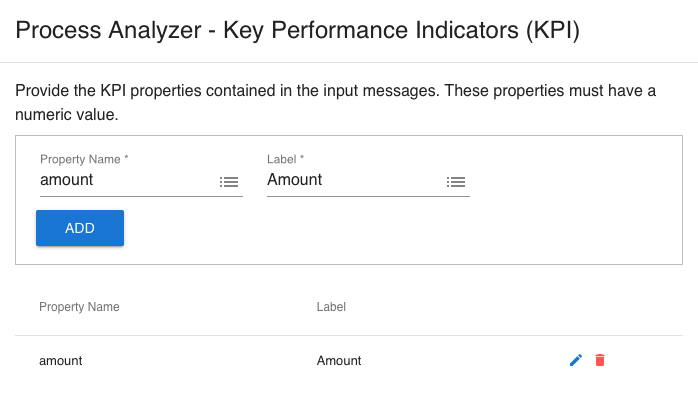 Here you can enter the names of the properties in the event message that contains KPI values. These properties must exist in every input event.