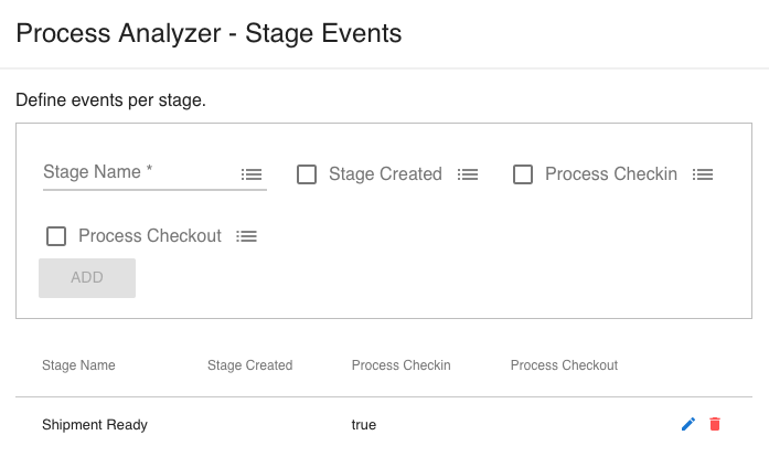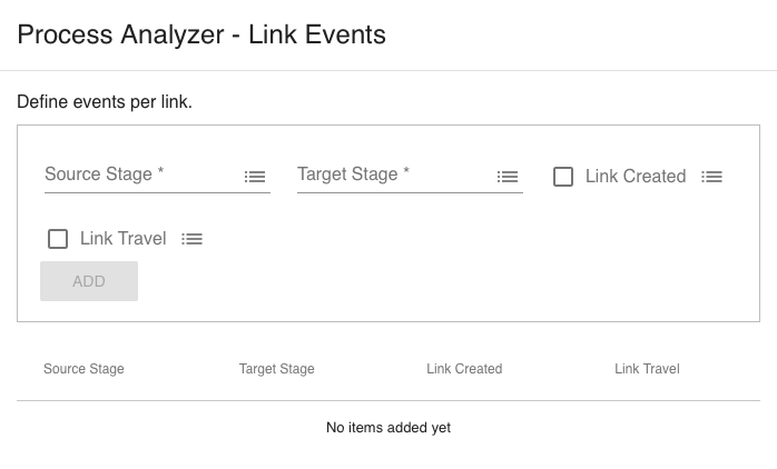 If you start the flow that contains the Process Analyzer you might get events for processes somewhere in the middle of their processing. If you want complete processes only, you can optionally specify process start stages. If a process checks in with one of these stages, it is automatically linked to a Process Start stage. Incomplete processes are ignored.