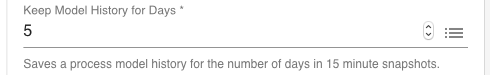 The Process Analyzer automatically takes snapshots of the process model every 15 minutes and saves it persistently. The dashboard component can view these snapshots to view the process model at a particular point in time. The maximum days back in time is 10 (960 snapshots).