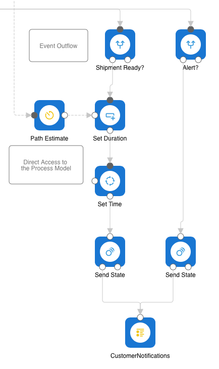 Consider the Process Analyzer as your business application's brain as it contains all states and data of your business processes. To automate your business based on this data, you can act on events that you can define for stages, links, and alerts. And you can also directly access the internal process model through various components.