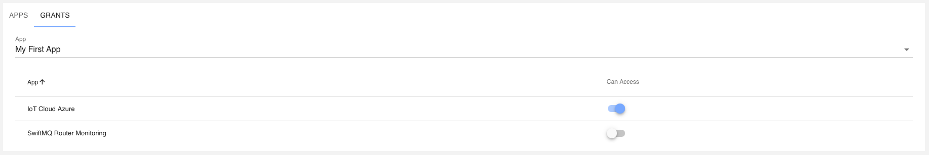 Usually, apps produce data streams that you can display in dashboards. These data streams are private to the respective apps. To allow that other apps can access these streams, you can assign grants between apps: