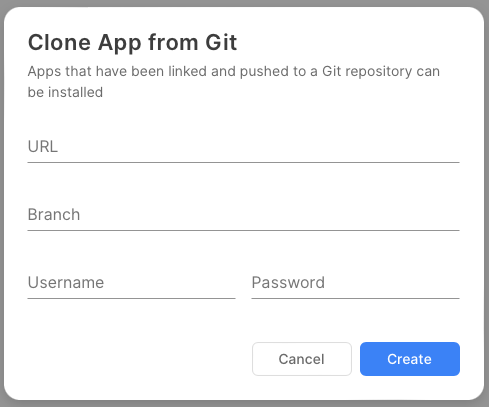 Apps that have been linked and pushed to a Git repository can be installed from that repository here: