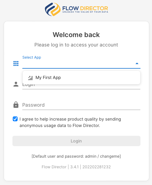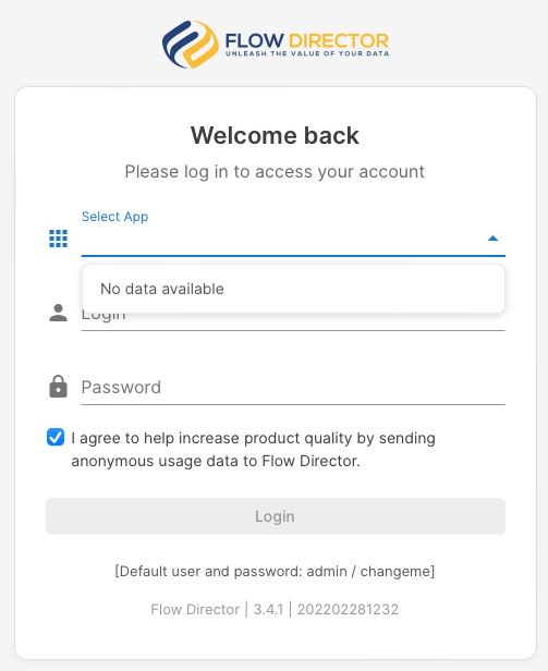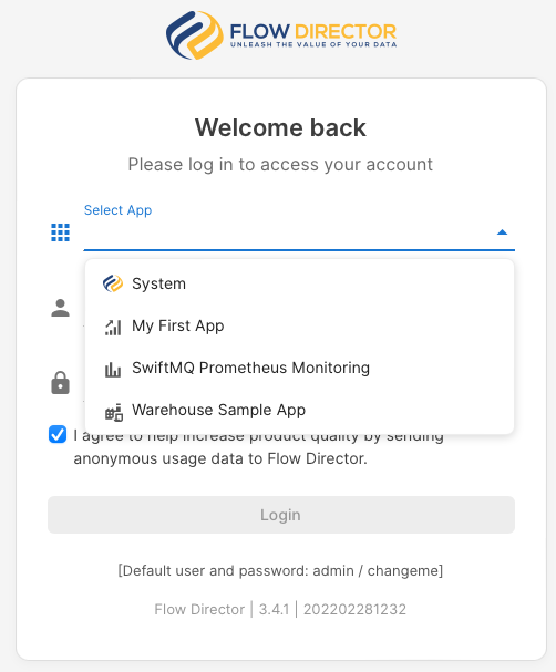 But sometimes, you may not want that user to see which apps are installed at the Flow Director instance, i.e., on a public shared Flow Director instance. In that case, you switch to Single App Login mode: