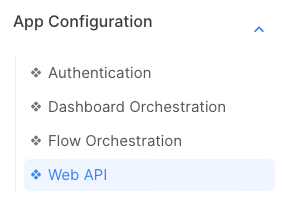 This menu brings you to the configuration of the web API: