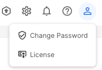 An admin user of an app has an additional License menu item in the user menu: