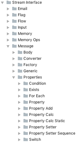A flow component library is a collection of flow components that belong together. The library can be structured in sub folders. Flow components are the leaf nodes of this structure: