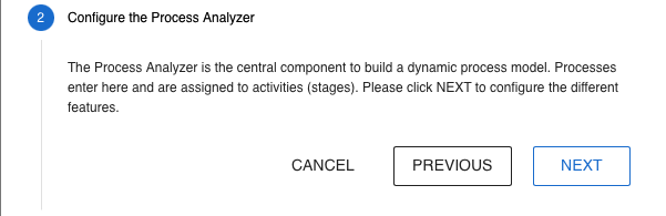 You can now configure the features of the process analyzer step by step. Either click NEXT or click on the header of a step to configure it: