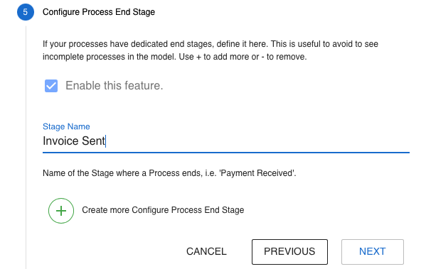 In our case, the process ends with sending the invoice. If you don’t define end stages, you’ll need to define a stage expiration (next step). Otherwise, your processes will stay at the last reported stages forever.