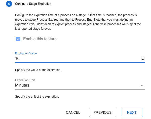 Defining a stage expiration is necessary if your processes don’t have a defined end stage. It avoids that they stay at the last reported stage forever.