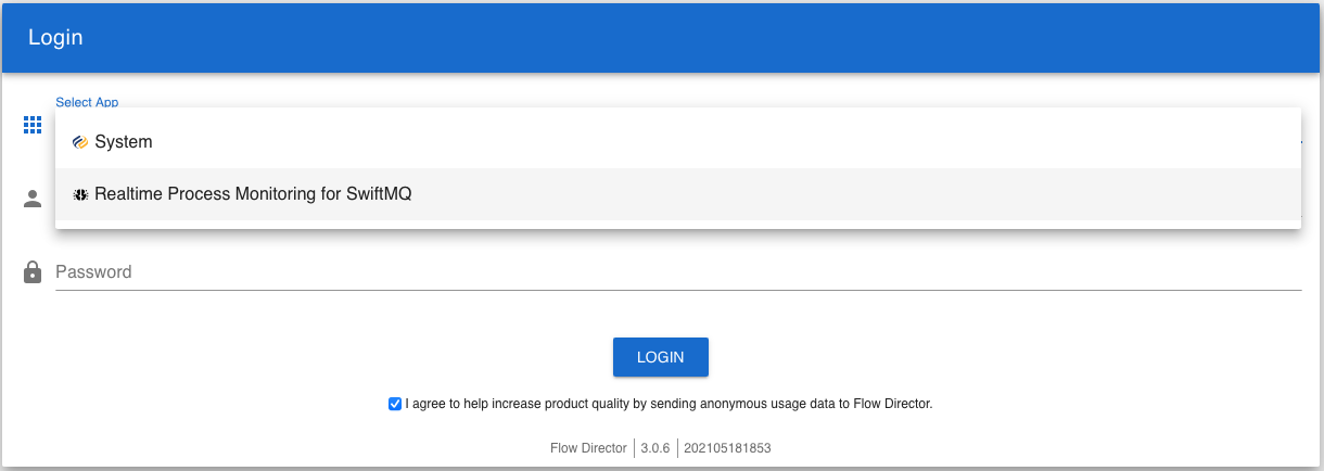 Select Realtime Process Monitoring for SwiftMQ from the app selector: