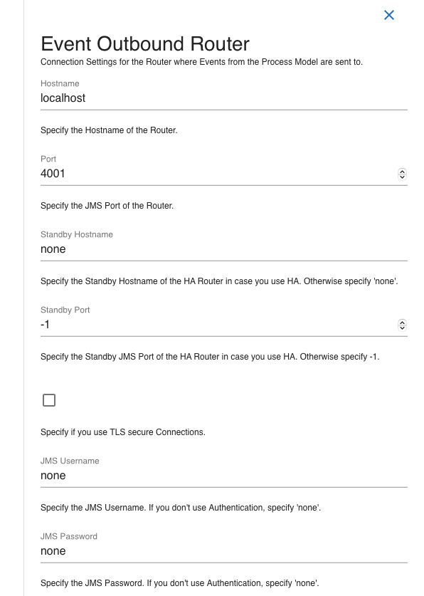 Click on EVENT OUTBOUND ROUTER to configure the outbound SwiftMQ router to send events: