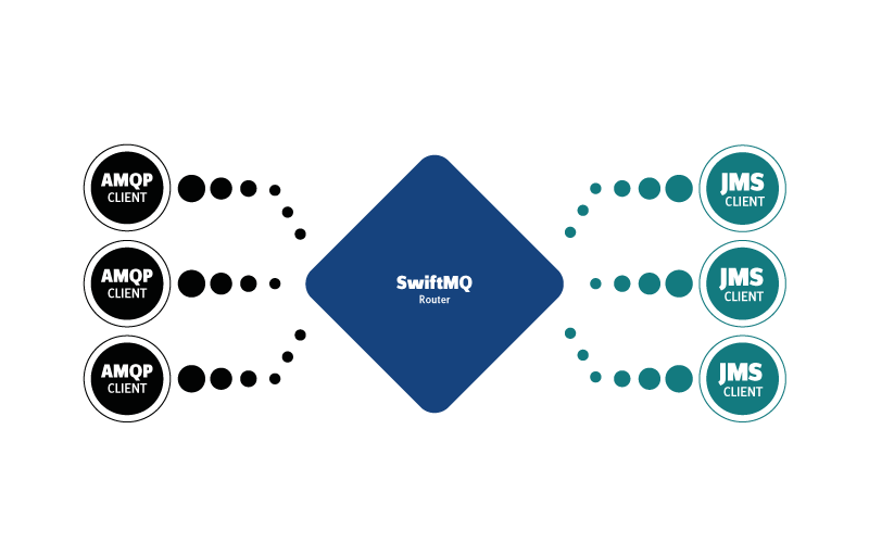 The AMQP Swiftlet is a high-performance AMQP broker implementation that provides full support for the AMQP 1.0 specification, except for the limitations noted below. It supports SASL authentication as well as SSL/TLS connections and fully integrates with JMS and all services of a SwiftMQ Router and Federated Router Network.