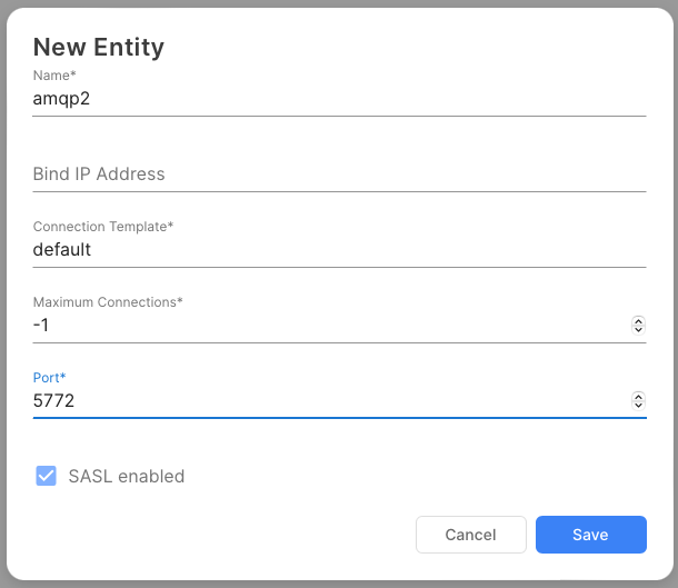 name | java.lang.String | Yes | Name of this Active AMQP Connection |