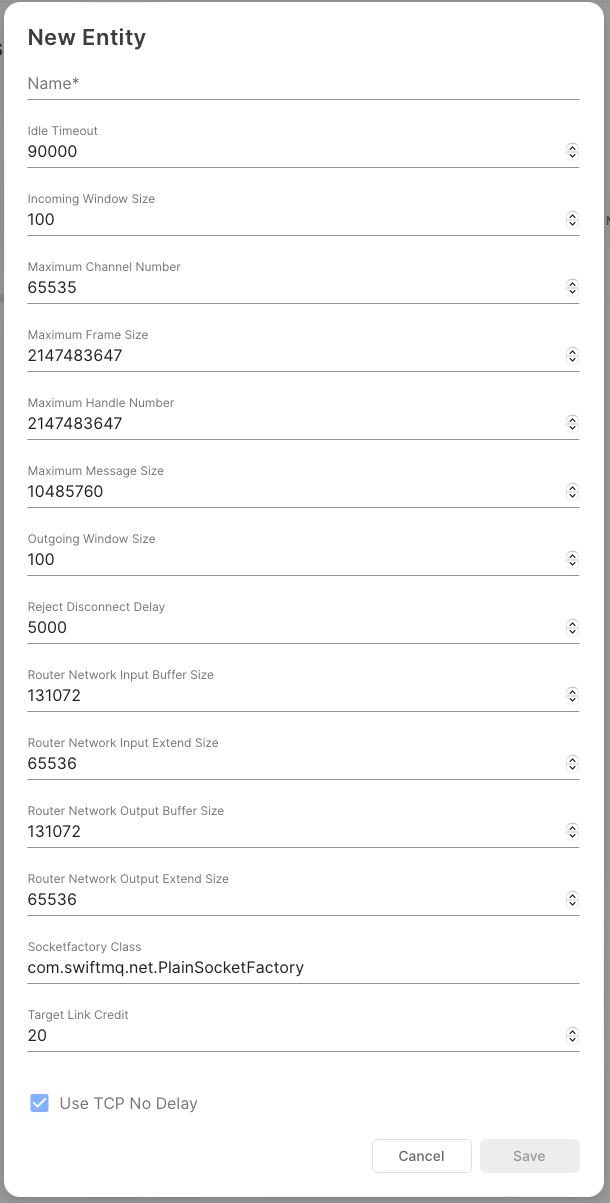 socketfactory-class | Default: com.swiftmq.net.PlainSocketFactory |