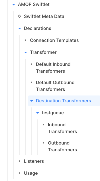 Source and target addresses (queues or topics) can be in the AMQP Global Addressing format. SwiftMQ automatically extracts SwiftMQ destination names out of it.