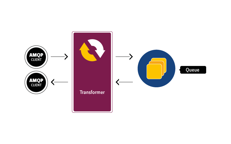 It is possible to define AMQP-only destinations with a native transformer that stores the AMQP payload as a BytesMessage body so there is no transformation overhead at all. To integrate with JMS and allow AMQP and JMS clients to produce and consume on the same destination a JMS mapping transformer can be defined which transforms an AMQP message into a typed JMS message and vice versa with all properties and header so there will be a full integration between AMQP and JMS clients, including mixed-mode request/reply.