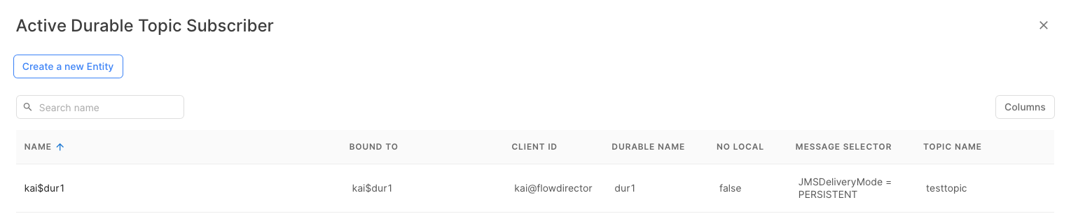 name | java.lang.String | Yes | Name of this Durable Topic Subscriber |