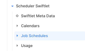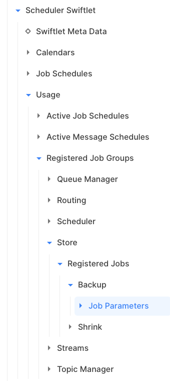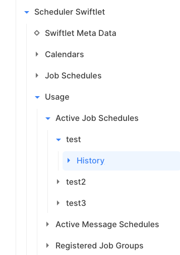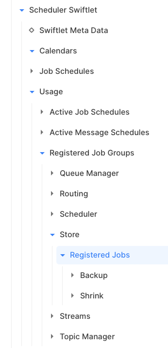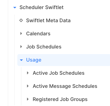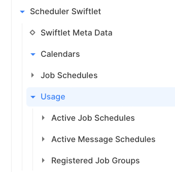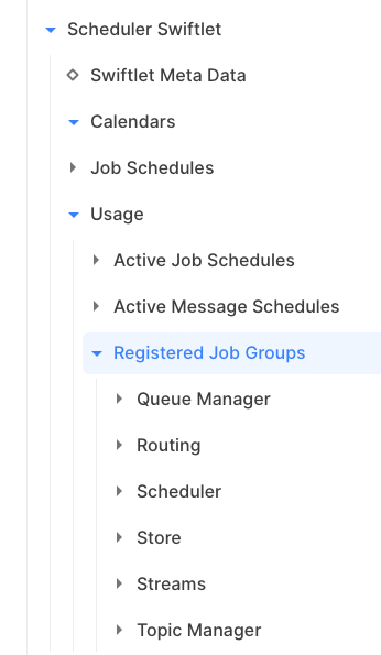 All job groups are shown in the folder Registered Job Groups below the Usage folder of the Scheduler Swiftlet: