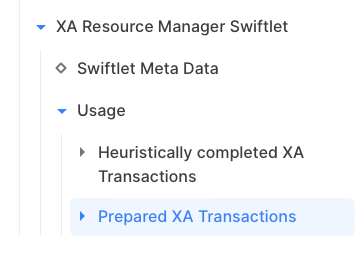 The list of in-doubt transactions is located within the "Usage / Prepared XA Transactions" folder of the XA Resource Manager Swiftlet: