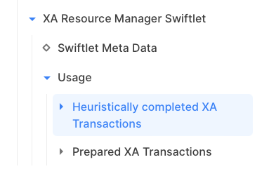 According to the XA specification, an XA resource has to store information about heuristically completed XA transactions until the driving transaction manager commands to forget it. Therefore, when an XA transaction has been heuristically completed with SwiftMQ Explorer App or CLI, it is still stored under the folder Usage / Heuristically completed XA Transactions until the recovery is started by a transaction manager: