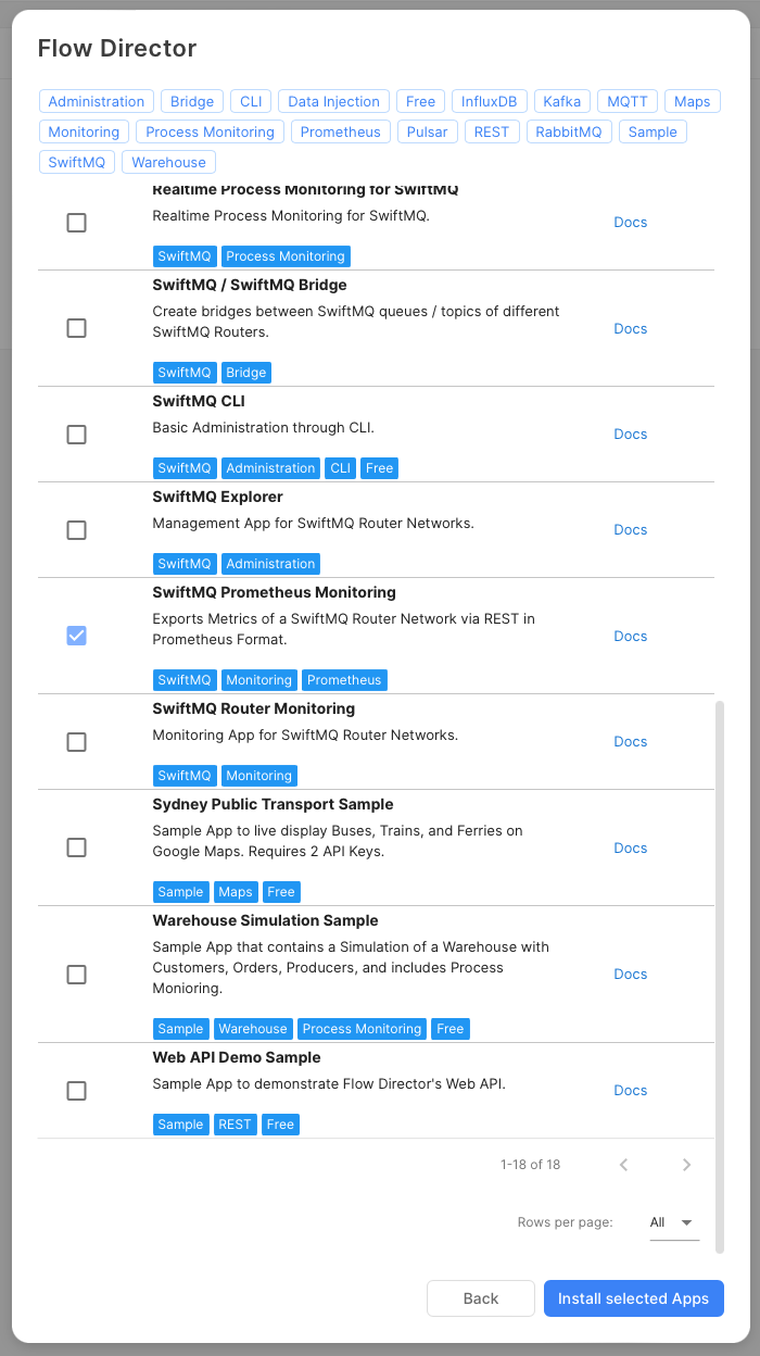 And select the app(s) you want to install. You can filter them by clicking on the tags above: