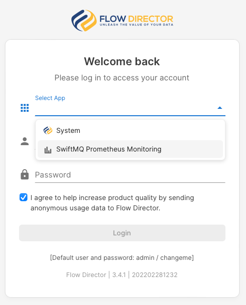Select SwiftMQ Prometheus Monitoring from the app selector: