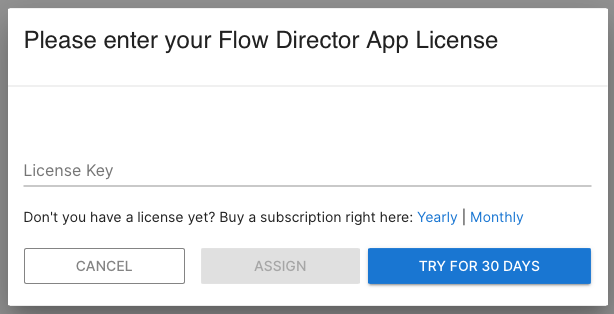 The first login to the app requires entering a license key. If you don’t have one yet, you can purchase it right here or try it for 30 days: