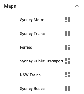Use the Maps menu to see the different available maps. Some may not display data (i.e., Ferries may not be active).