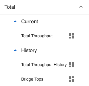 Dashboards under the Total menu display the total throughput of all bridges currently and as history:
