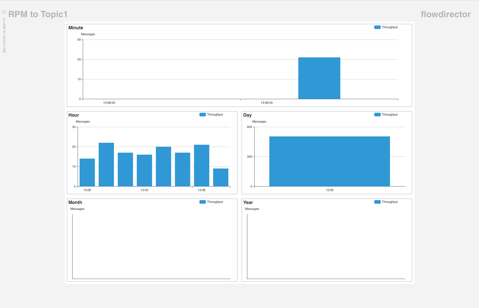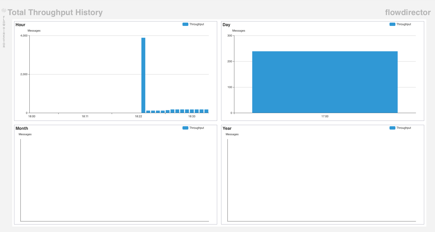 This dashboard shows a history of the total throughput of the current hour, day, month, and year:
