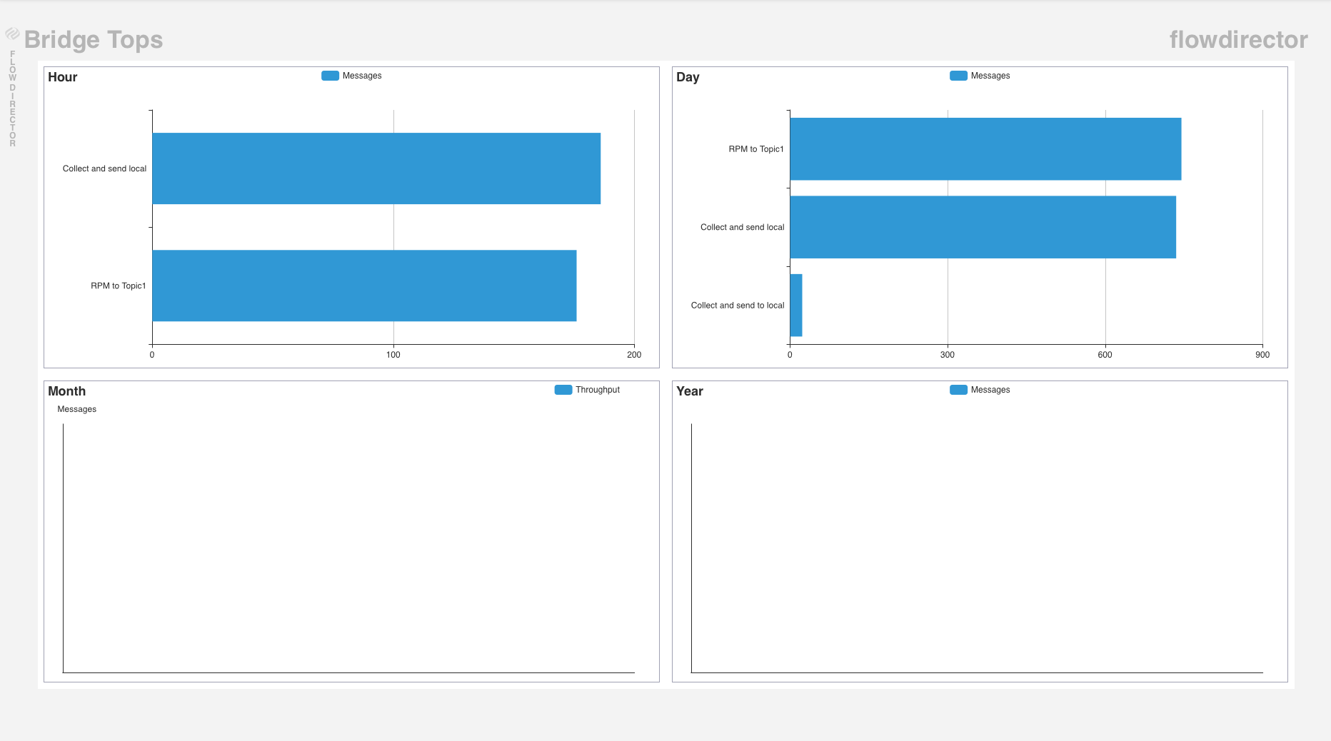 This dashboard shows a group chart history of the bridges ordered by the descending throughput of the current hour, day, month, and year: