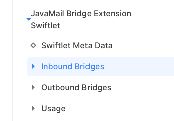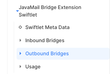 Use the SwiftMQ Explorer App, connect, and select the JavaMail Bridge Swiftlet / Outbound Bridges: