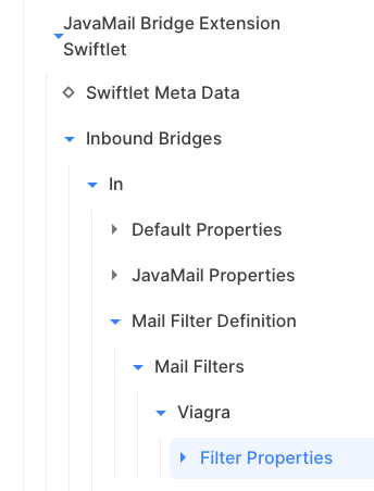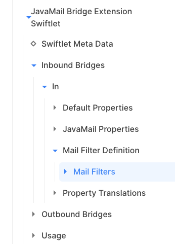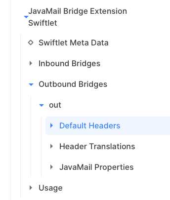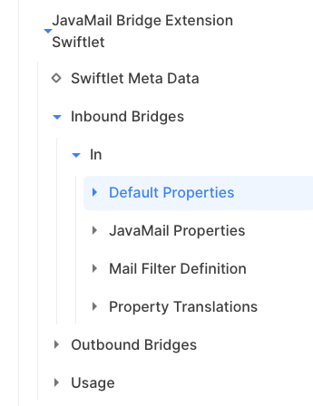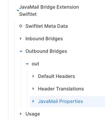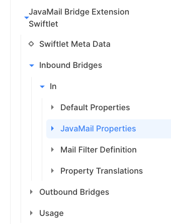 To define a JavaMail property, select the JavaMail Properties node of your newly created bridge: