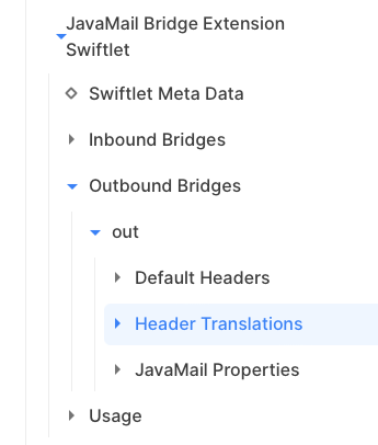 For this example, the outbound bridge configuration has to have defined header translations for MailSubject into subject, FromAddress into from, and ToAddress into to.