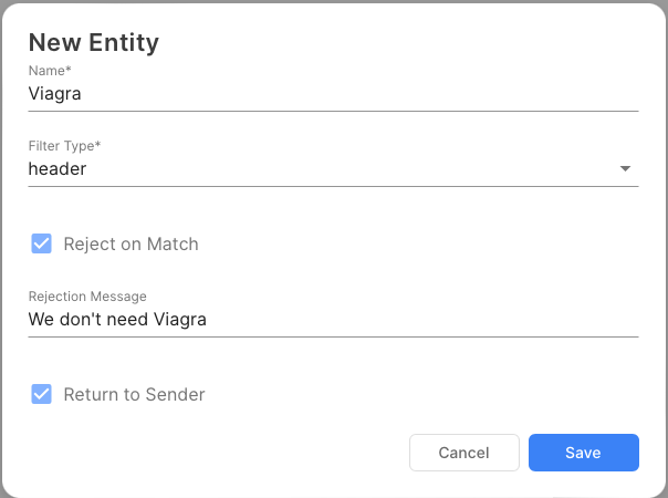 return-to-sender | java.lang.Boolean | No | Returns Mail to Sender if rejected by this Filter |