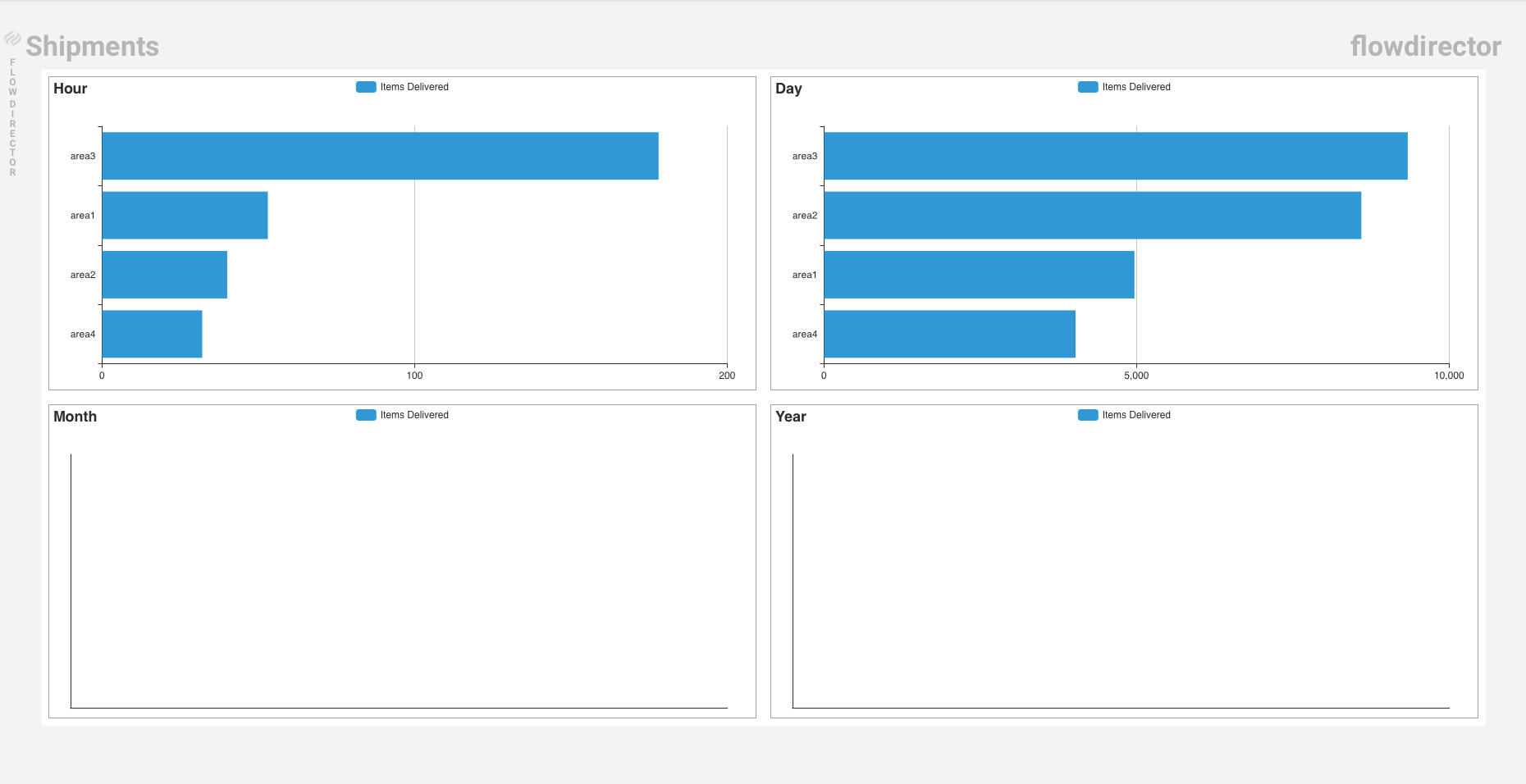 This dashboard contains group charts that display top-performing shipping areas within the corresponding time frame.