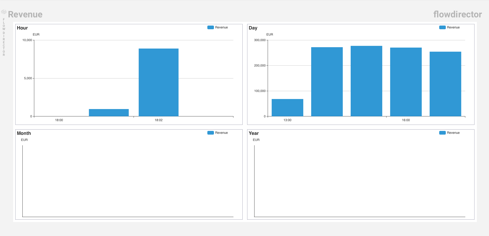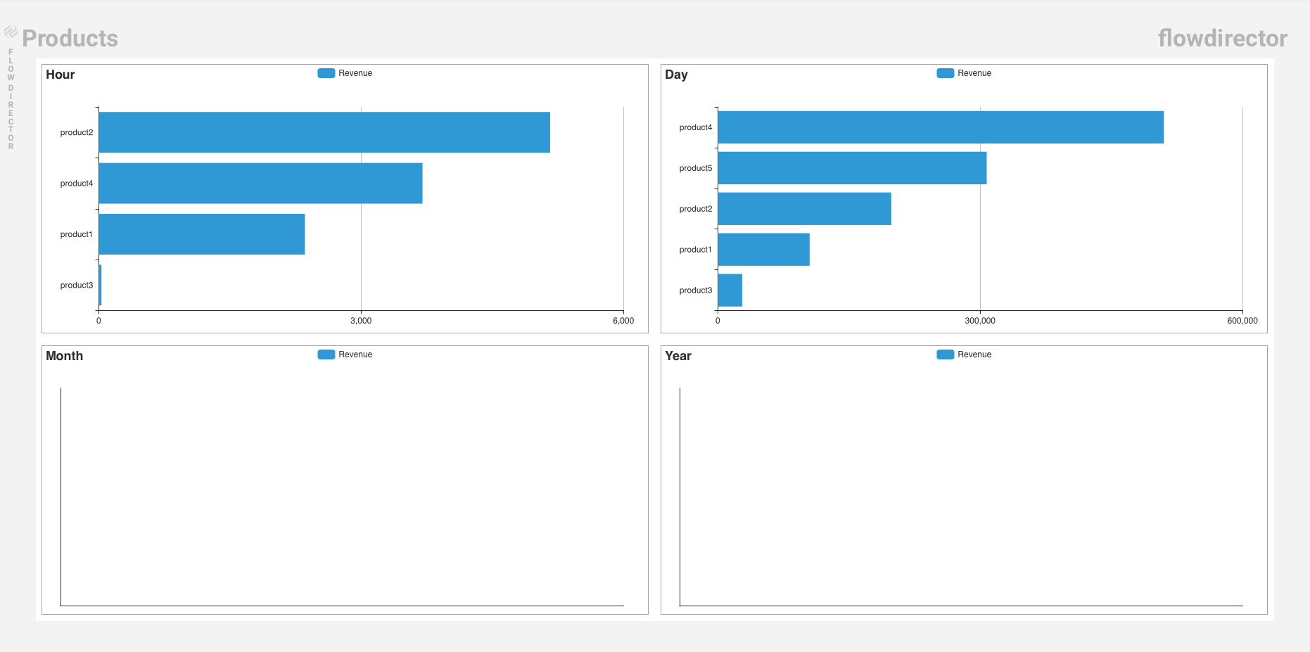 This dashboard contains group charts that display top-performing products within the corresponding time frame.